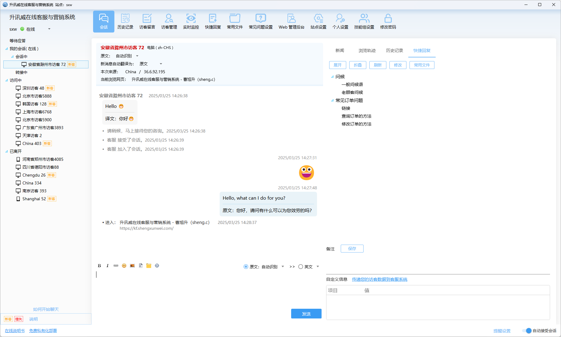 响应速度快,操作速度快,新消息自动弹出。能够预知访客输入内容。